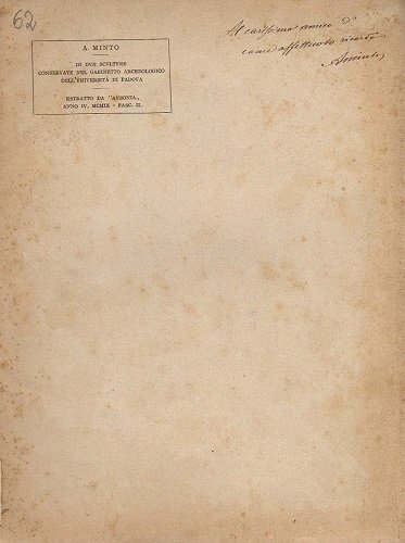 Di due sculture conservate nel Gabinetto archeologico dell'Università di Padova - Estratto da AUSONIA anno IV - 1909
