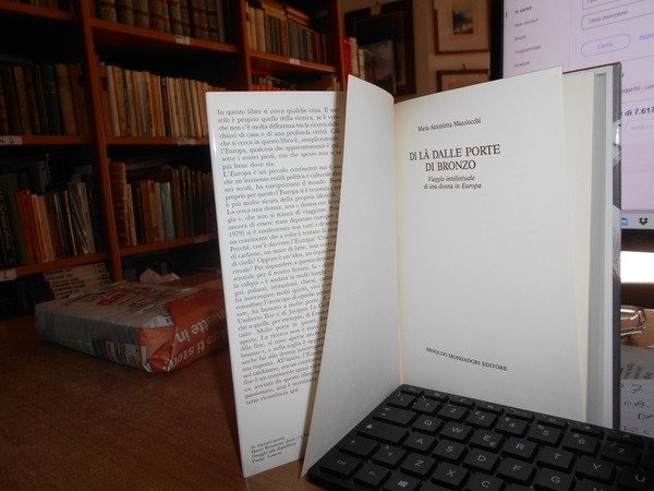 Maria Antonietta Macciocchi. Milano, Arnoldo Mondadori, 1987. DI LA' DALLE PORTE DI BRONZO. Viaggio intellettuale di una donna in Europa. In-8° piccolo, tela edt. con titolo in oro al dorso, sovracopertina ill. a col. 386 pp. In ottimo stato di conservazione. Uff. stanzetta mob. sinistra II - 5 carc.