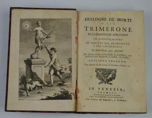 Dialoghi de' Morti o sia Trimerone Ecclesiastico-politico in dimostrazione de' diritti del Principato e del Sacerdozio in risposta all'Autore del Diritto libero della Chiesa di acquistare, e di possedere beni temporali sì mobili, che stabili. Edizione Seconda, con aggiunta di una Lettera di Filotimo e Filalete, ec.