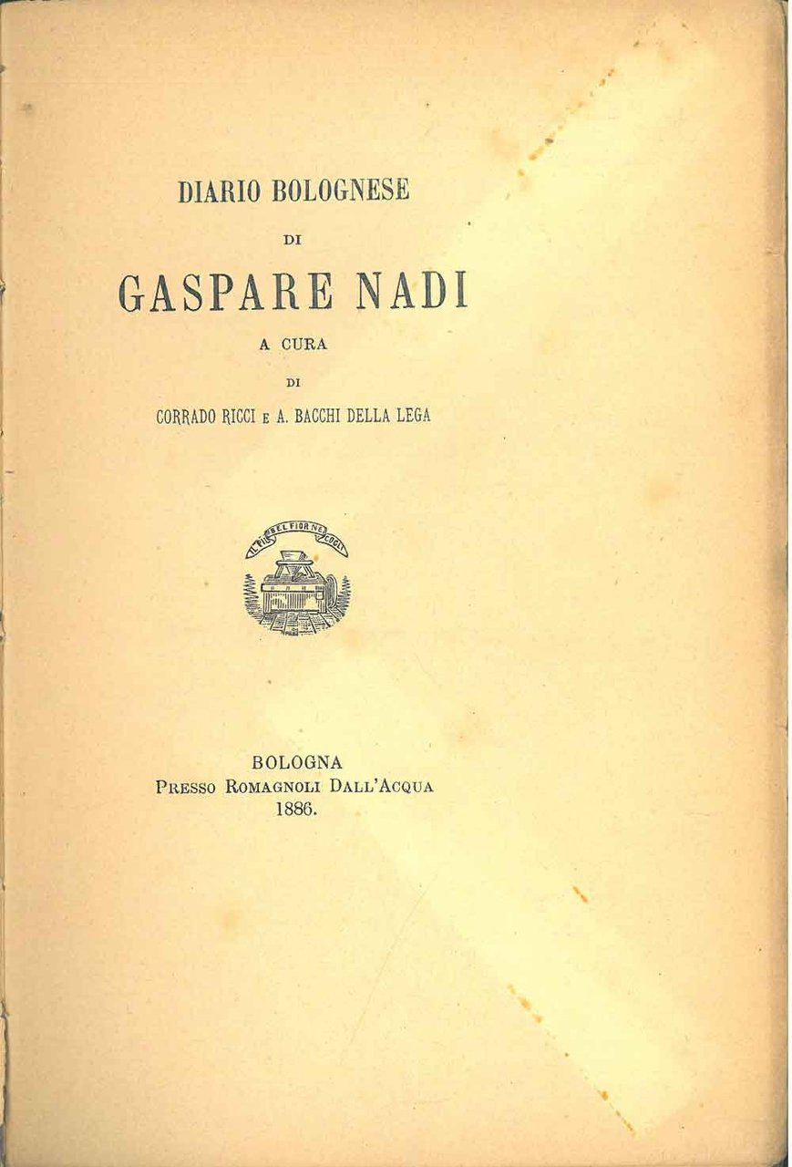 Diario bolognese di Gaspare Nadi. A cura di Corrado Ricci e A. Bacchi della Lega