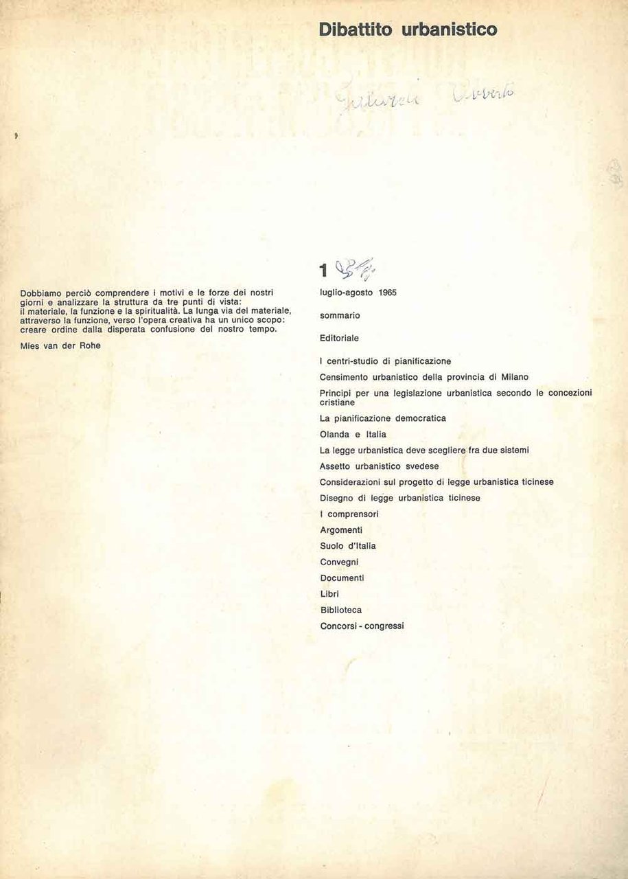Dibattito urbanistico. I primi 3 numeri, annata completa. 1965