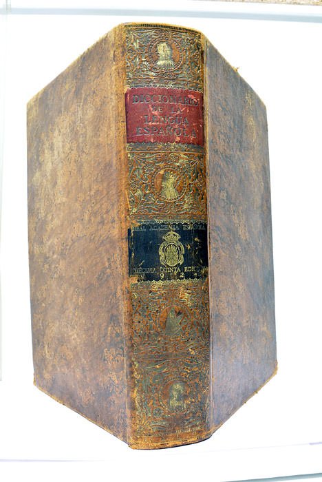 XXI. 1275 pages. 1 feuillet. (32x22 cm). Plein veau raciné. Dos lisse orné. Coins et coiffes émoussés. Publié en 1925 par Calpe à Madrid, cet ouvrage représente une édition significative dans l'évolution de la lexicographie espagnole. À une époque marquée par des changements culturels et linguistiques importants en Espagne, cette édition du dictionnaire de la Real Academia Española sert de référence pour la standardisation de la langue espagnole. Rares rousseurs. Papier légèrement bruni. Bon exemplaire.