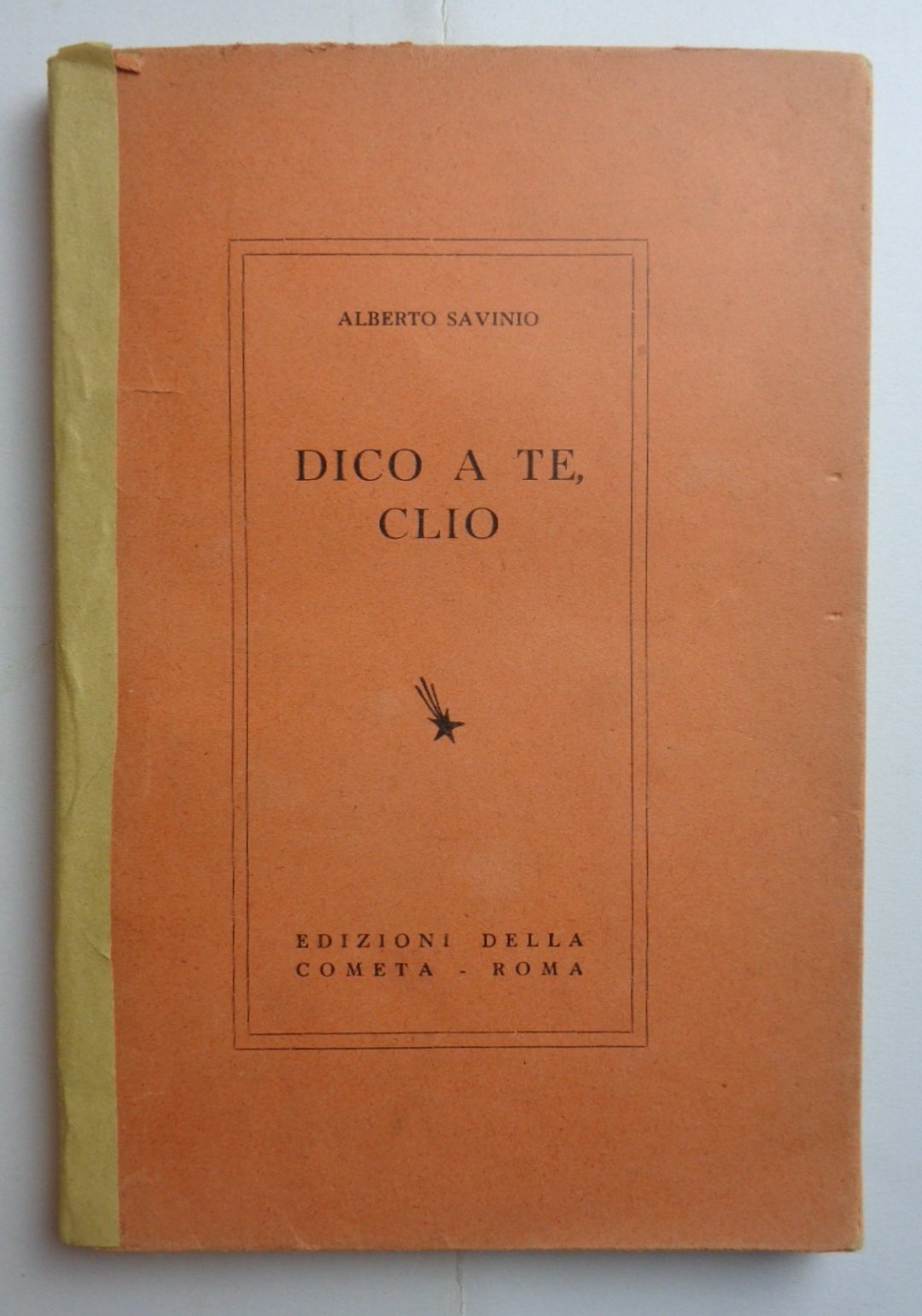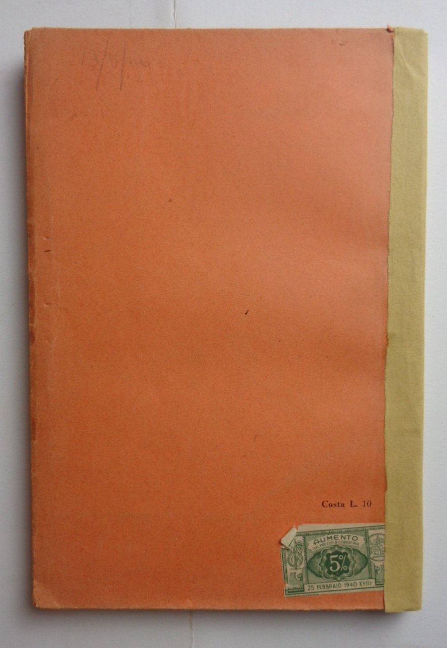 Prima edizione. Un volume (19 cm) di 125-(5) pagine. Edizione numerata, su carta vergata, di 500 copie (questo è il n. 122). Brossura originale arancione con titolo alla copertina, dorso mancante sostituito con carta carta galla. Peraltro condizioni molto buone.