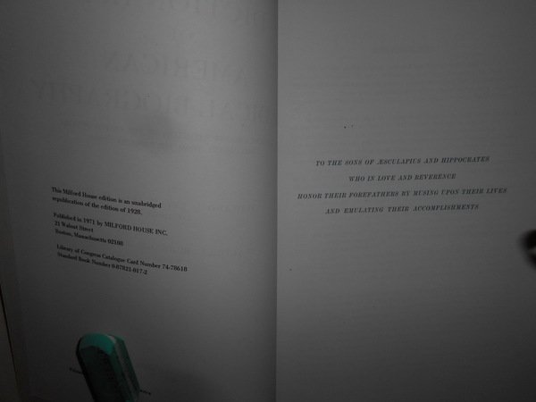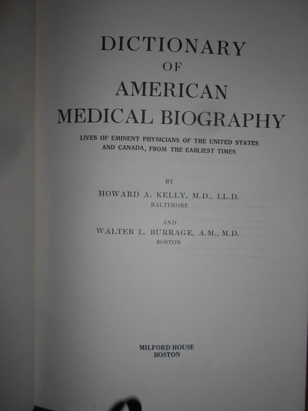 HOWARD, A. KELLY - WALTER, L. BURRAGE. Boston, Milford House, 1971. DICTIONARY of AMERICAN MEDICAL BIOGRAPHY. In-8°, tutta tela edit. con titolo in oro al dorso. XXX, 1364 pp. con testo su due colonne. Esemplare come nuovo. Uff. D - II - 3