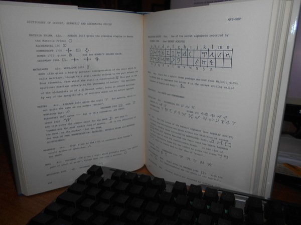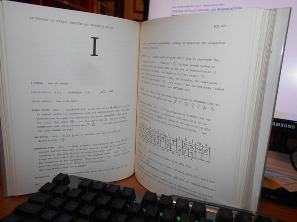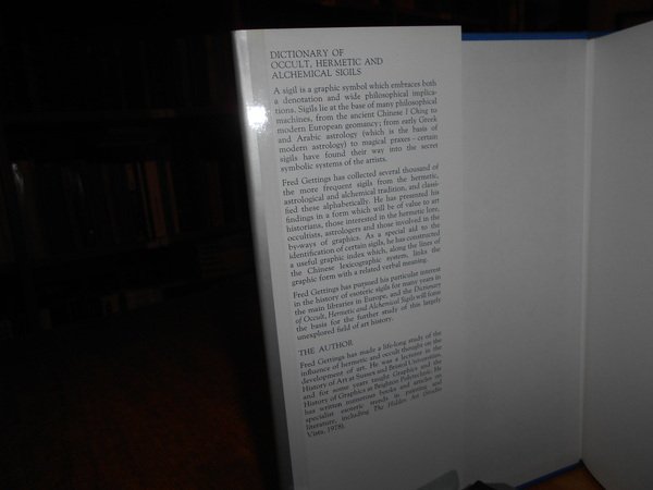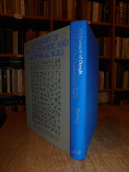 FRED GETTINGS. London, Routledge & Kegan, 1981. DICTIONARY OF OCCULT, HERMETIC AND ALCHEMICAL SIGILS. In-8°, tela edit. bleu con titolo in argento al dorso, sovracopertina. 410 pp. con numerose figure n.t. Importante testo. Come nuovo. Neg. esot. mob. 60