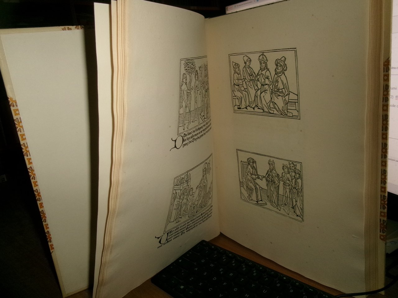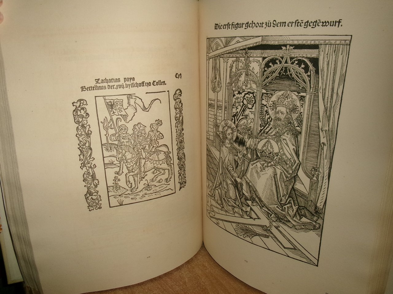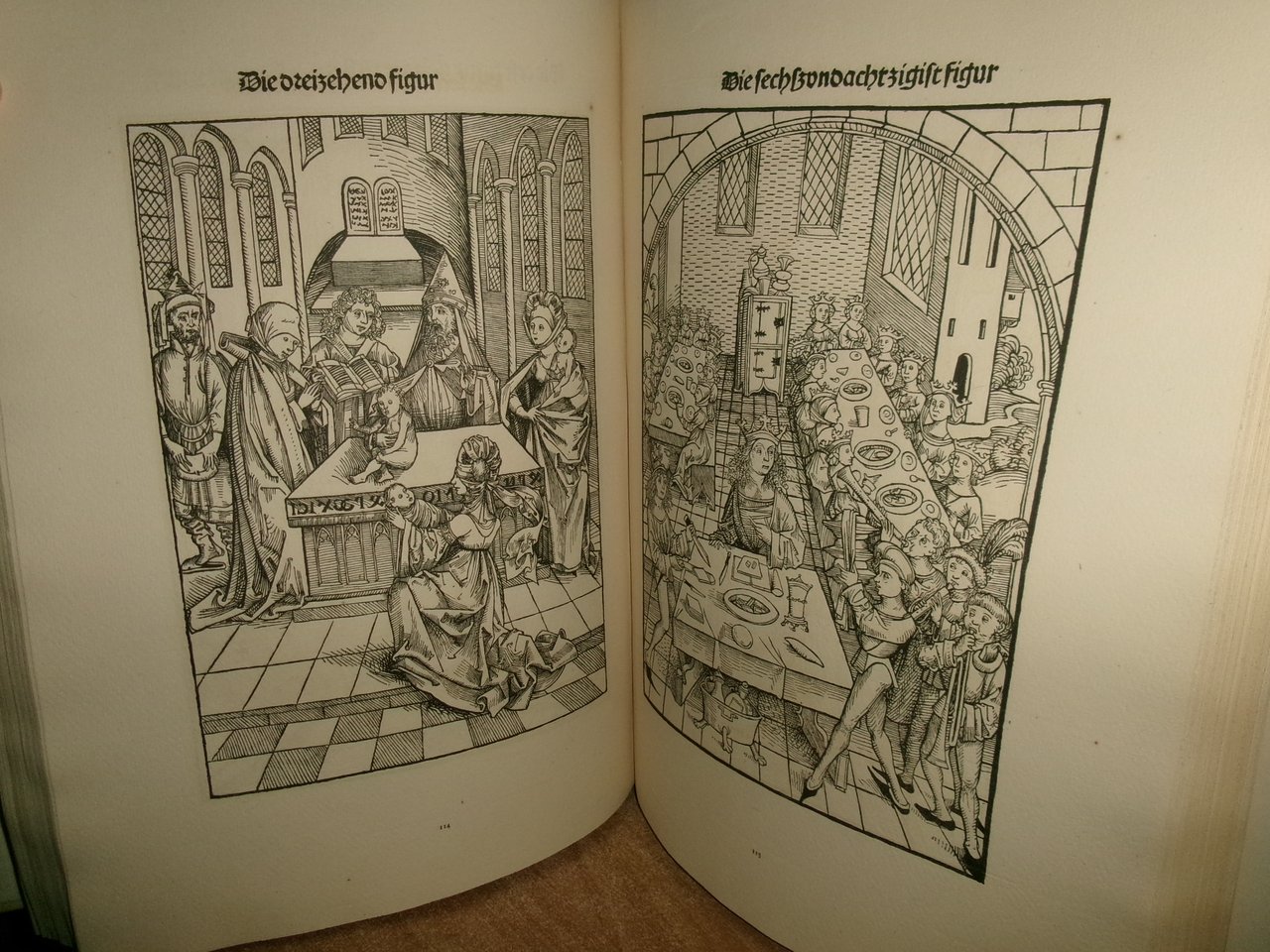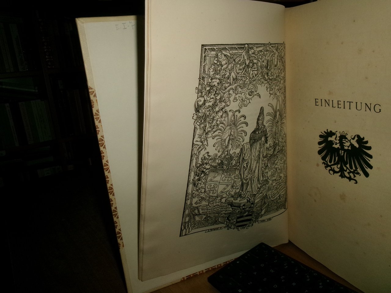 Die deutsche Bücherillustration der Gothik und Frührenaissance. 2 volumi in-folio, m-pergamena con larghe punte, titoli in oro su due tasselli ai dorsi. Erster band (2) ff. bianchi, xvi, 298 pp., (2) ff. bianchi con numerose illustrazioni n.t.; Zweiter band (2) ff. bianchi, viii, 263, (3) pp. Volume composto da 263 tavole di illustrazioni/riproduzioni anche a piena pagina. Bellissimo esemplare in lingua tedesca. Uff. E - I - 7