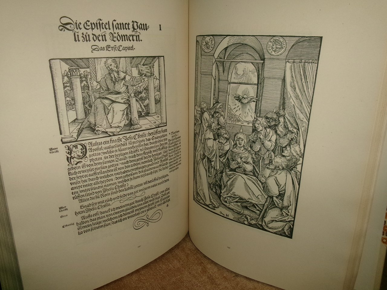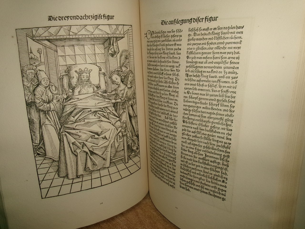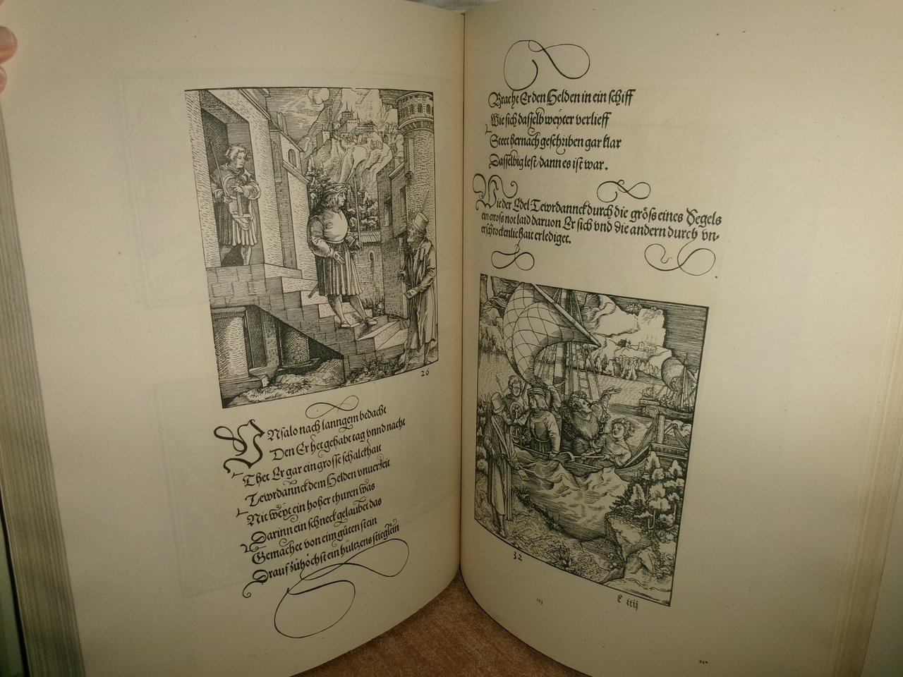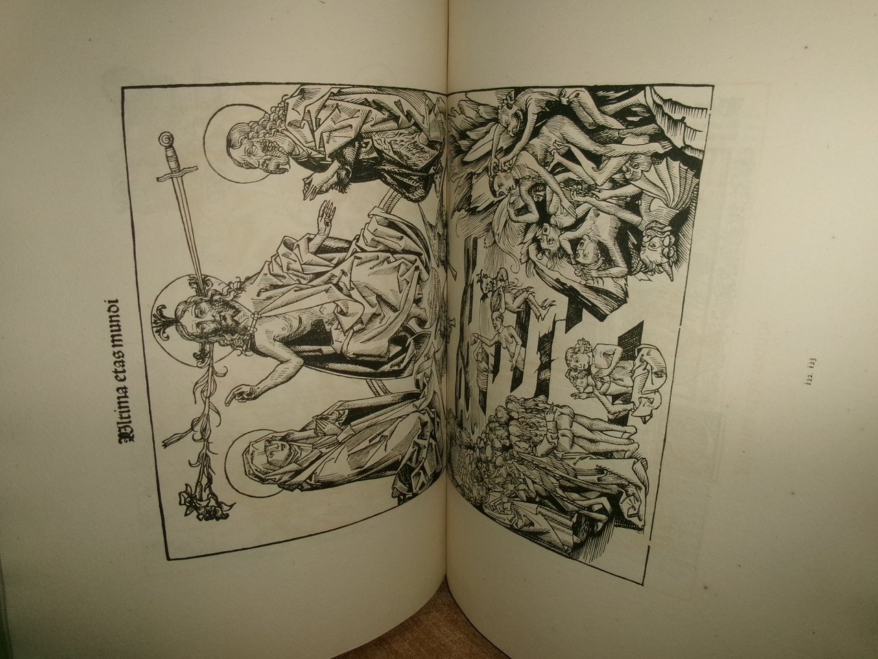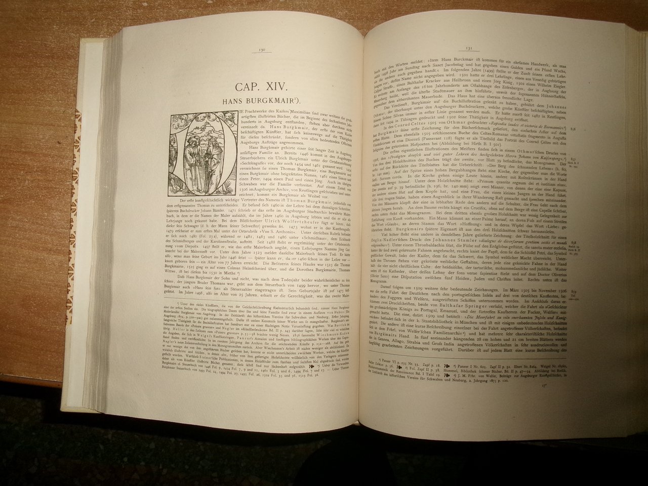 Die deutsche Bücherillustration der Gothik und Frührenaissance. 2 volumi in-folio, m-pergamena con larghe punte, titoli in oro su due tasselli ai dorsi. Erster band (2) ff. bianchi, xvi, 298 pp., (2) ff. bianchi con numerose illustrazioni n.t.; Zweiter band (2) ff. bianchi, viii, 263, (3) pp. Volume composto da 263 tavole di illustrazioni/riproduzioni anche a piena pagina. Bellissimo esemplare in lingua tedesca. Uff. E - I - 7