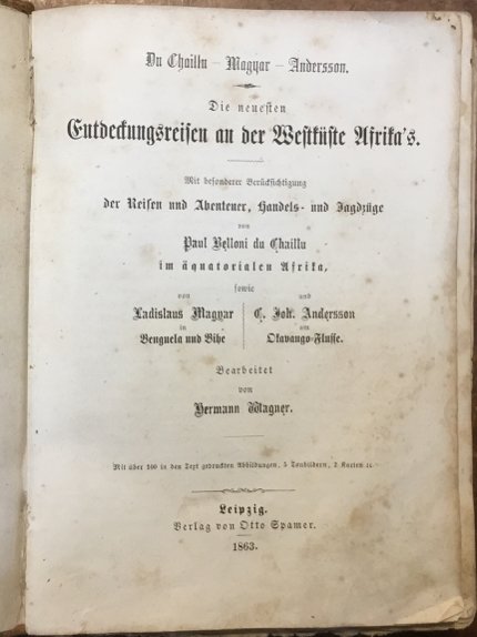 Die neuesten Entdeckungsreisen an der Westküste Afrika's. Mit besonderer Berücksichtigung der Reisen und Abenteuer, Handels- und Jagdzüge von Paul Belloni du Chaillu im äquatorialen Afrika, sowie von Ladislaus Magyar in Benguela und Bihe und C. Joh. Andersson am Okavango-Flusse.