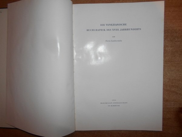 MARIA LANCKORONSKA. In Hamburg, Maximilian - Gesellschaft, 1950. DIE VENEZIANISCHE BUCHGRAPHIK DES XVIII. JAHRHUNDERTS. In-4°, tela con titolo in oro al dorso. 114, (1) pp. con 121 riproduzioni. In ottimo stato di conservazione. Uff. E - V - 6