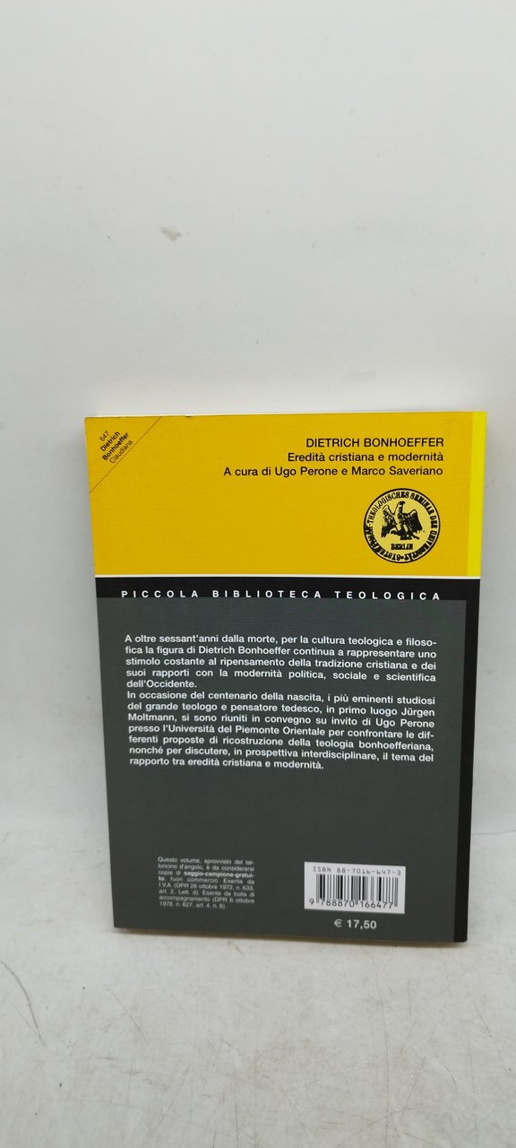 dietrich bonhoeffer eredità cristiana e modernità | Libri antichi e moderni | ugo perone e marco saveriano