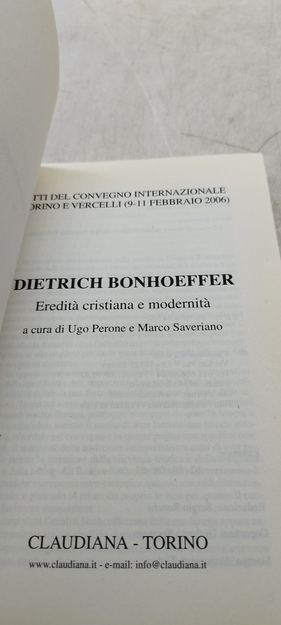 ugo perone e marco saveriano dietrich bonhoeffer eredità cristiana e modernità. , claudiana 2006 italiano, °°brossura
