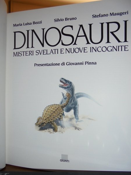 Luisa Bozzi - Silvio Bruno - Stefano Maugeri. Firenze, Giunti Editore, 1993. DINOSAURI. Misteri svelati e nuove incognite. In-4°, cartonato edit. ill. a col. con sovracopertina. 240 pp. con numerose illustrazioni anche a piena pagina la maggior parte a colori. Esemplare come nuovo. Neg. nat. mob. 0