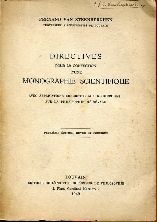 Directives pour la confection d'une monographie scientifique avec applications concretes aux recherches sur la philosophie medievale