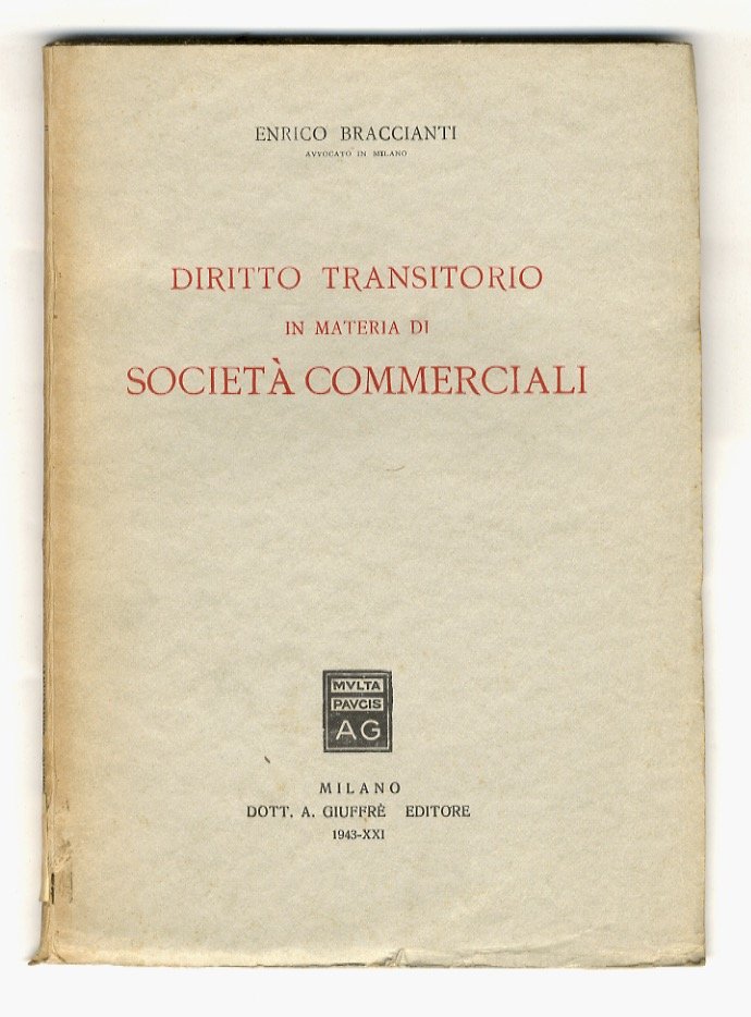 Milano, Giuffrè, 1943, in-8, br. editoriale, pp. [10], 109, [3]. Ottimo esemplare, intonso.