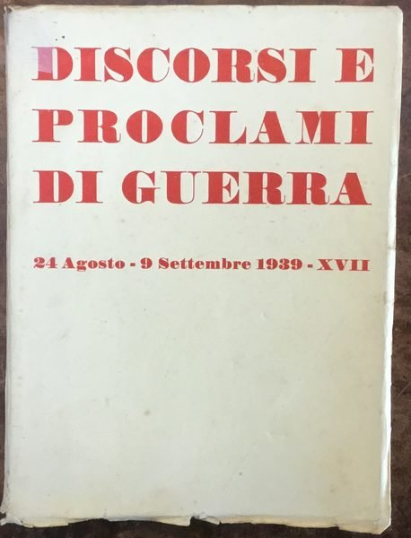 Discorsi e proclami di guerra 24 agosto - 9 settembre 1939 - XVII