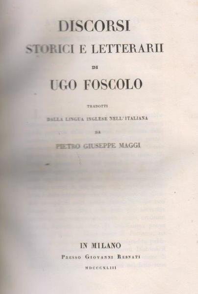 Discorsi letterari di Ugo Foscolo tradotti dalla lingua inglese nell'italiana da Pietro Giuseppe Maggi