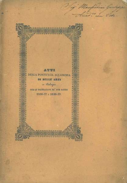 23 cm, copertina originale con mancanza; pp. ix, 66; contiene: "Degli effetti perniciosi alle Belle Arti provenienti dall'ingnoranza e dalla presunzione" di A. Serra. In parte intonso