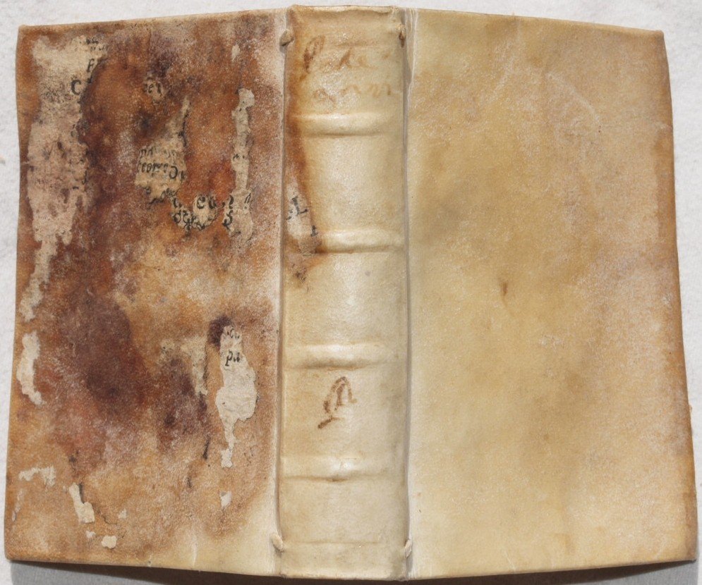 In 24. Dim. 12x9 cm. Pp. (24)+223+(1). Edizione del 1667 di questa rara opera spirituale scritta da Marcantonio Pellegrini (1530-1616) giuresconsulto e letterato. Pellegrini, nato a Camisano Vicentino, fu professore di diritto canonico dello studio Padovano. Morì a Padova. L'opera descrive ed analizza la contrizione All'interno è presente una bella incisione a piena pagina e due incisioni alle ultime due carte. Bella legatura in piena pergamena coeva. In buone condizioni. L'ultima carta bianca risulta mancante. Copertina in piena pergamena coeva in buone condizioni generali con lievi usure ai margini e dorso; carta incollata al piatto posteriore che presenta macchie. Legatura in ottime condizioni. All'interno le pagine si presentano in buone condizioni con rare fioriture. Lievi usure al margine destro delle pagine dalla 207 sino alla fine senza perdita di testo. L'ultima carta bianca risulta mancante. Rotture ai contropiatti. Edition of 1667 of thsi scarce spiritual work written by Marcantonio Pellegrini (1530-1616) juresconsult and letterate. Pellegrini, born in Camisano Vicentino, was teacher of church right of the studio Padovano. He died in Padoa. the work describes and analyzes contrition. Inside there is a beautiful full-page woodcut and two engravings in the last page. Beautiful full parchment coeval cover. In good conditions. The last white page is missing. Full parchment coeval cover in very good general conditions slightly worn in the edges and spine; paper attached in the back palyte with parchment with stains. Binding in very good conditions. Inside pages are in good conditions with occasional foxings. Slight wearings in the right edge of pages from 207 until the end with no loss of text. Le last white page is missing. Cracks in the internal part of plates.
