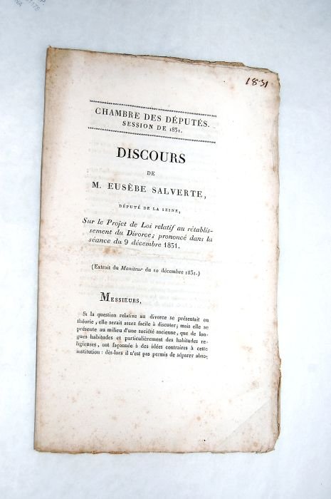 Discours sur le projet de loi relatif au rétablissement du divorce; prononcé dans la séance du 9 décembre 1831.
