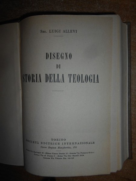 ALLEVI LUIGI. Torino, Società Editrice Internazionale, 1939. DISEGNO DI STORIA DELLA TEOLOGIA. In-16° grande, tela con titolo in oro entro tassello al dorso, copertine originali consevate. viii, 469 pp. Ottimo esemplare in legatura recente con le brossure originali conservate. Neg. esot. mob. 101