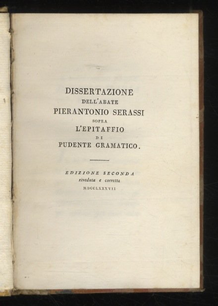 Dissertazione dell'abate Pierantonio Serassi sopra l'epitaffio di Pudente Gramatico. Edizione seconda riveduta e corretta.