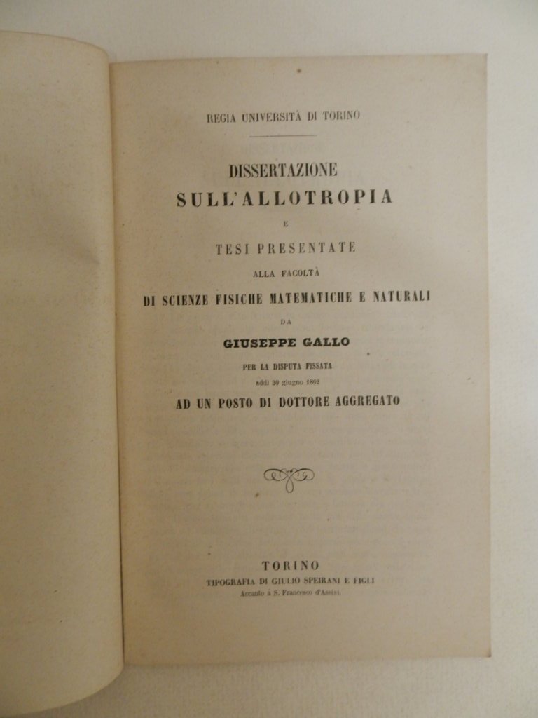 Dissertazione sull'allotropia e tesi presentate alla facoltà di scienze fisiche matematiche e naturali