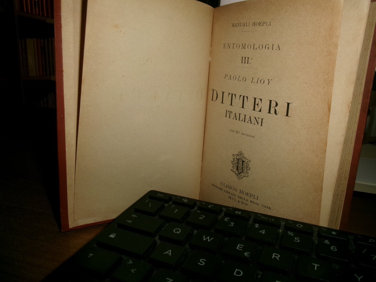 Paolo Lioy. Milano, Hoepli Manuali, 1895. Ditteri Italiani. In-16°, tela edit. 358, (32) pp. con 227 incisioni. In ottimo stato stato di conservazione. Edizione originale. Timbro di ex proprietà nella prima bianca. Neg. Hoepli mob. 19.