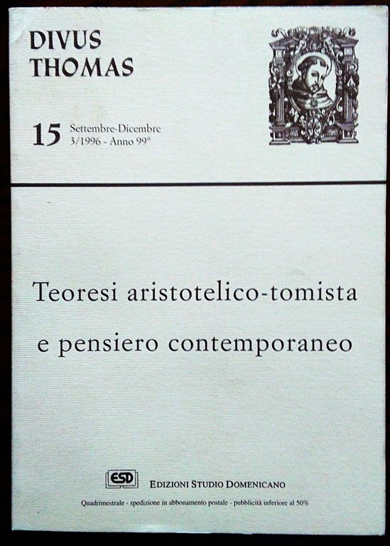 Divus Thomas. Rivista quadrimestrale dello Studio Filosofico Domenicano. N. 15, Settembre-Dicembre 1996. Teoresi aristotelico-tomista e pensiero contemporaneo.