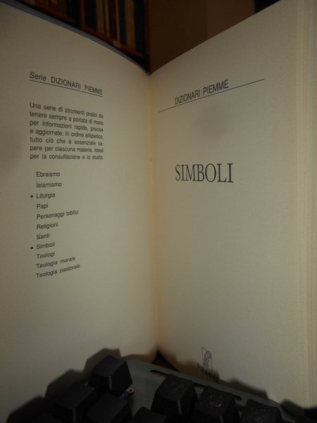 Dizionari Piemme. SIMBOLI. Casale Monferrato, Edizioni Piemme, 1993. In-8° piccolo, copertine semirigide plastificate. 268 pp. con numerose piccole illustrazioni in bianco e nero nel testo. Come nuovo. Neg. Mass. mob. H. - H.