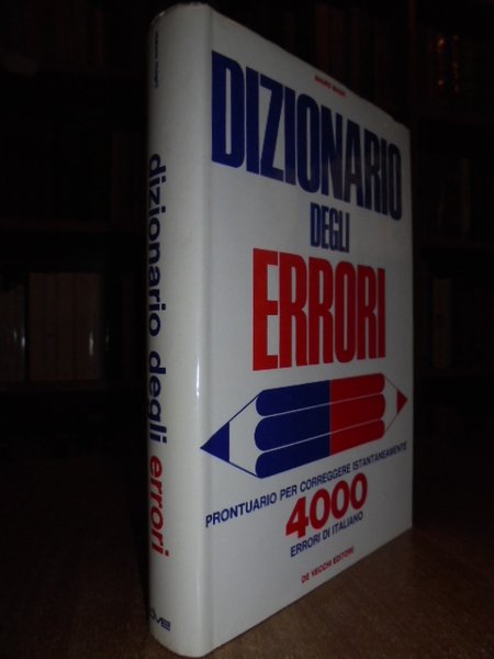 Mauro, Magni. Milano, De Vecchi Editore, 1971. Dizionario degli errori. Prontuario per correggere istantaneamente 4000 errori di italiano. In-8°, tela edit. con sovracopertina. 414 pp. In ottimo stato di conservazione o come nuovo. Neg. mob. nero disch.