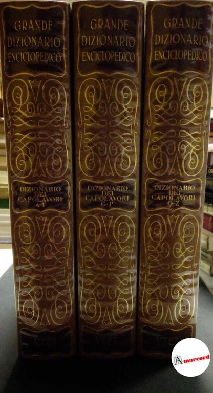 Dizionario dei capolavori (3 voll.), Utet, 1987, in-4, rilegato a mezza tela con costa in pelle e fregi oro, sovraccopertina in acetato, pp.2060 complessive, illustrazioni b/n f.t.