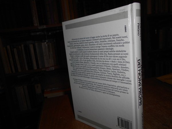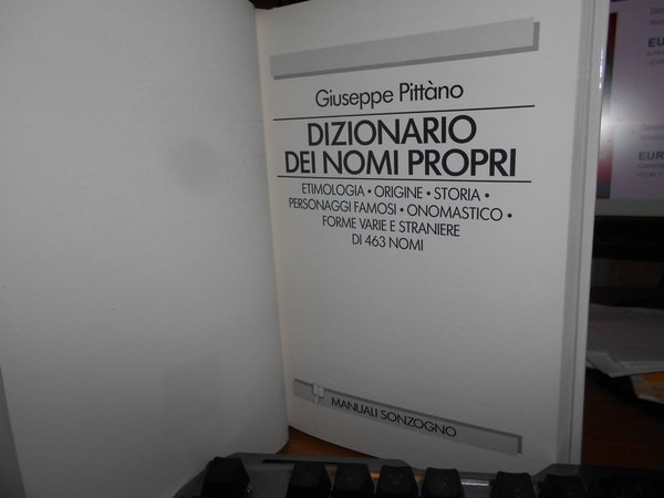 Giuseppe Pittàno. Milano, Manuali Sonzogno, 1990. Dizionario dei Nomi Propri. Etimologia. Origine. Storia. Personaggi famosi. Onomastico. Forme varie e straniere di 463 nomi. In-8°, cartonato edit. 269 pp. Come nuovo. Uff. stanz. TV. mob. fronte nostro