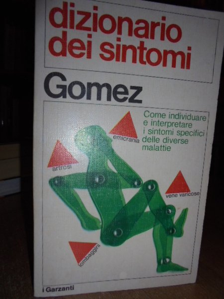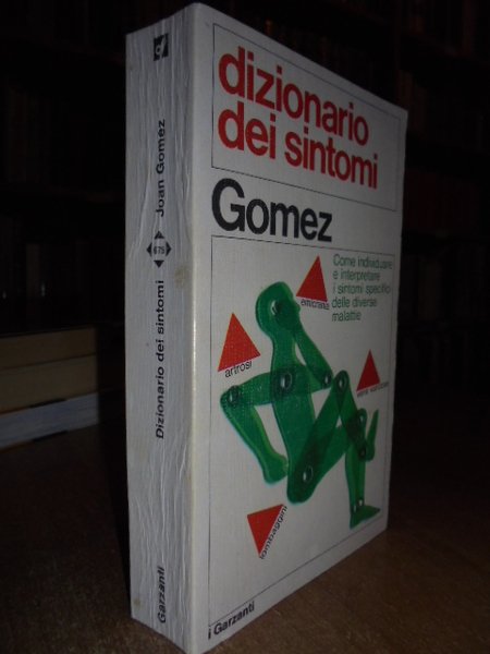 Joan, Gomez. Milano, Aldo Garzanti Editore, 1977. Dizionario dei sintomi. Come individuare e interpretare i sintomi specifici delle diverse malattie. In-16°, cart. edit. ill. a col. 493 pp. con alcune illustrazioni in nero n.t. Ben conservato. Neg. magazz. scat. 9