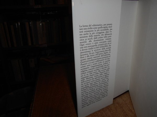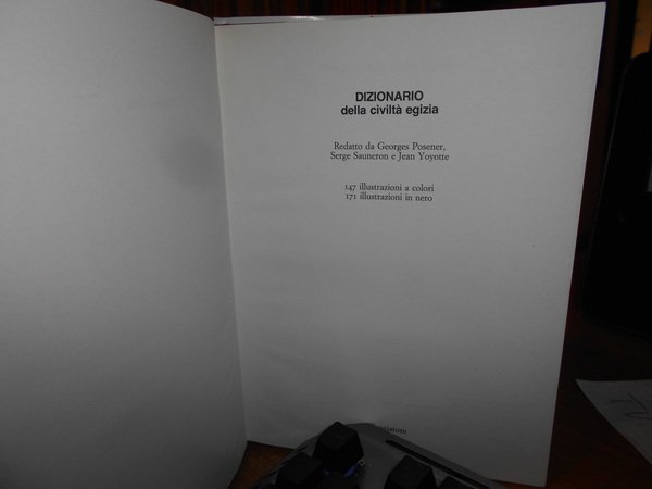 GEORGES POSENER. SERGE SAUNERON. JEAN YOYOTTE. Milano, Il Saggiatore, 1983. Dizionario della Civiltà Egizia. In-8°, tela edit. bordeaux con titolo in oro al dorso, sovracopertina ill. a col. xvi, 355 pp. con 147 illustrazioni a colori, 171 illustrazioni in nero. Come nuovo. Uff. stanzetta TV. mob. fronte nostro.