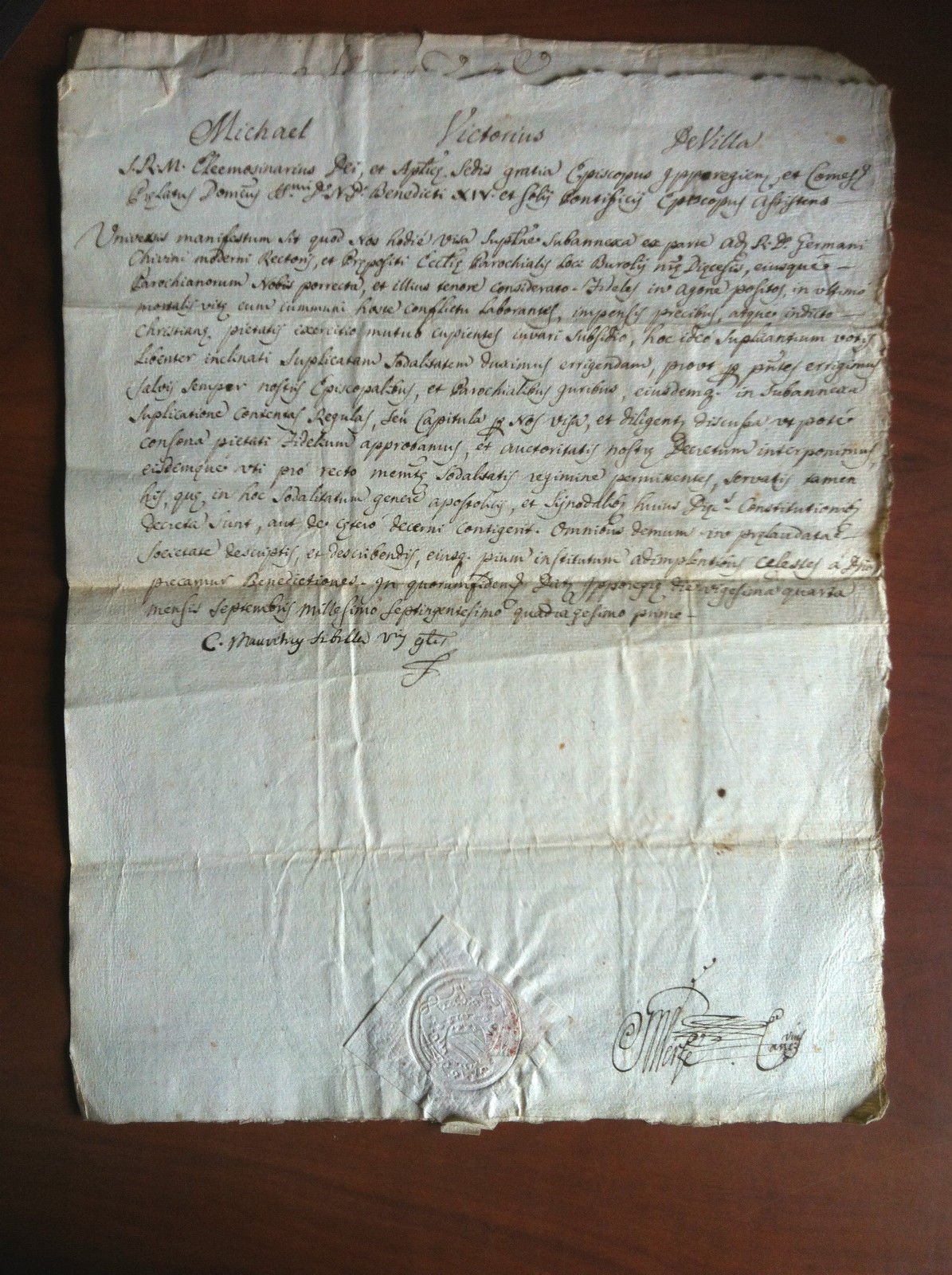 Documento originale 1741 Vescovo di Ivrea Michael Victorius De Villa E11164