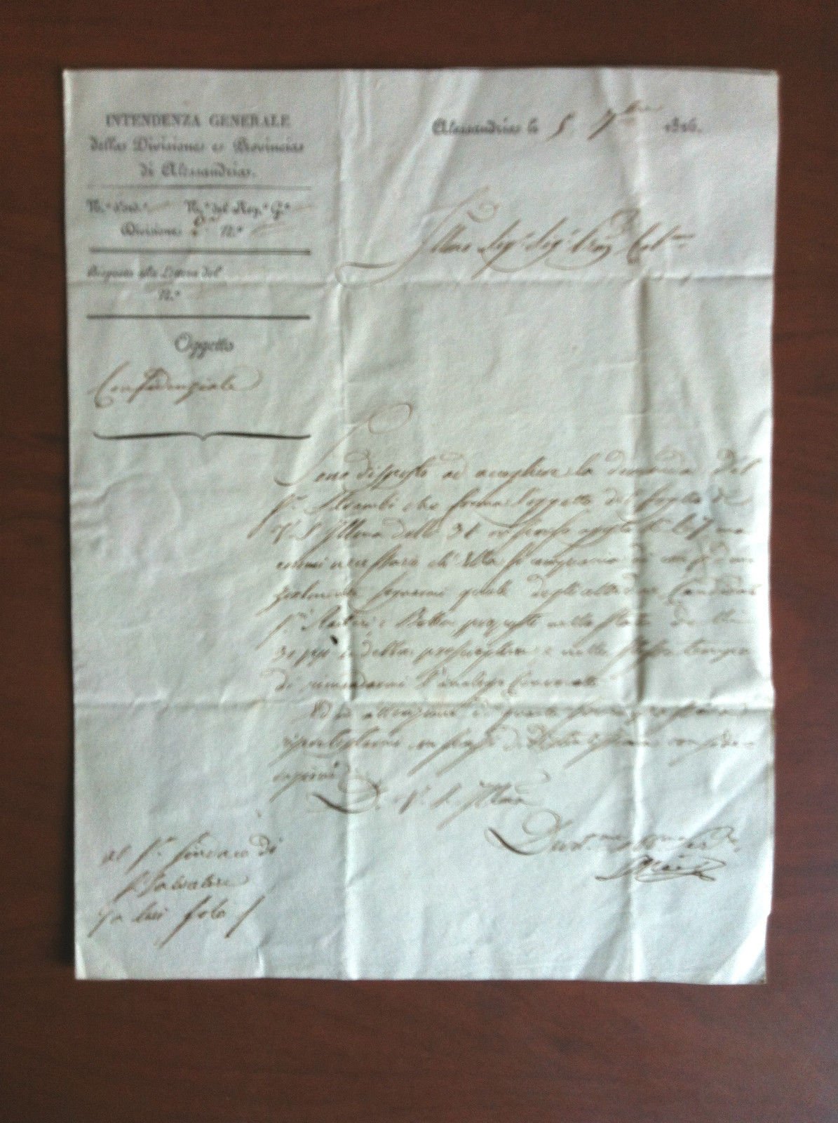 Documento originale 1826 Provincia di Alessandria Intendenza Generale - E11445
