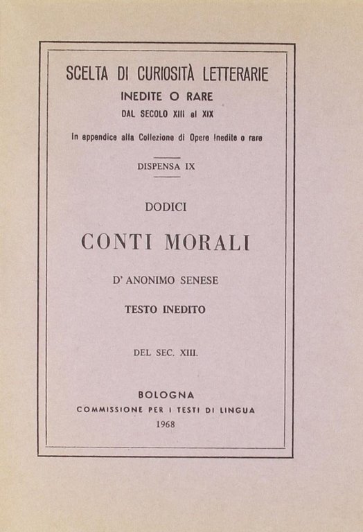 Sala Bolognese, 1969; br., pp. 168, cm 13x18. (Scelta di curiosità lett. dal sec. XIII).