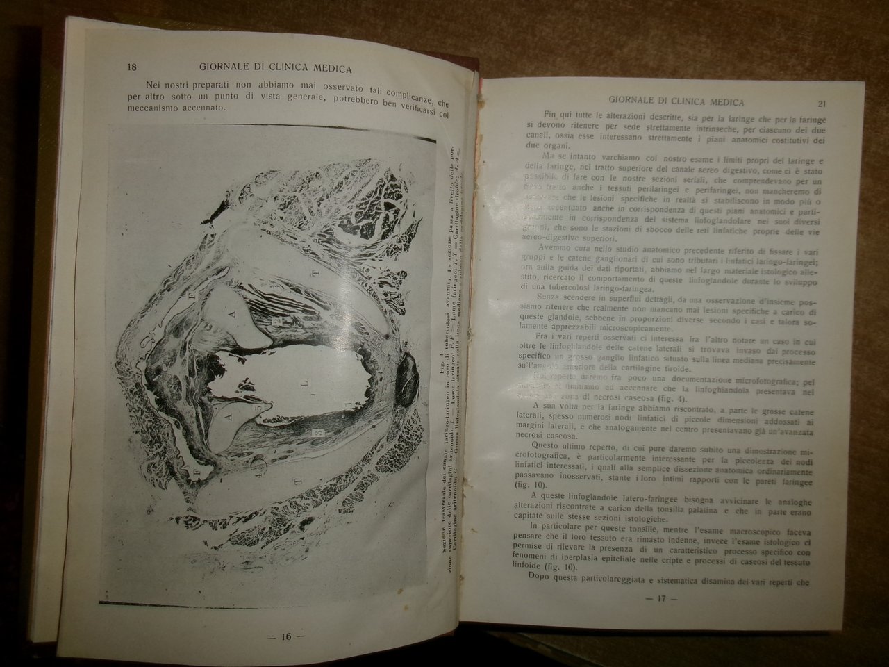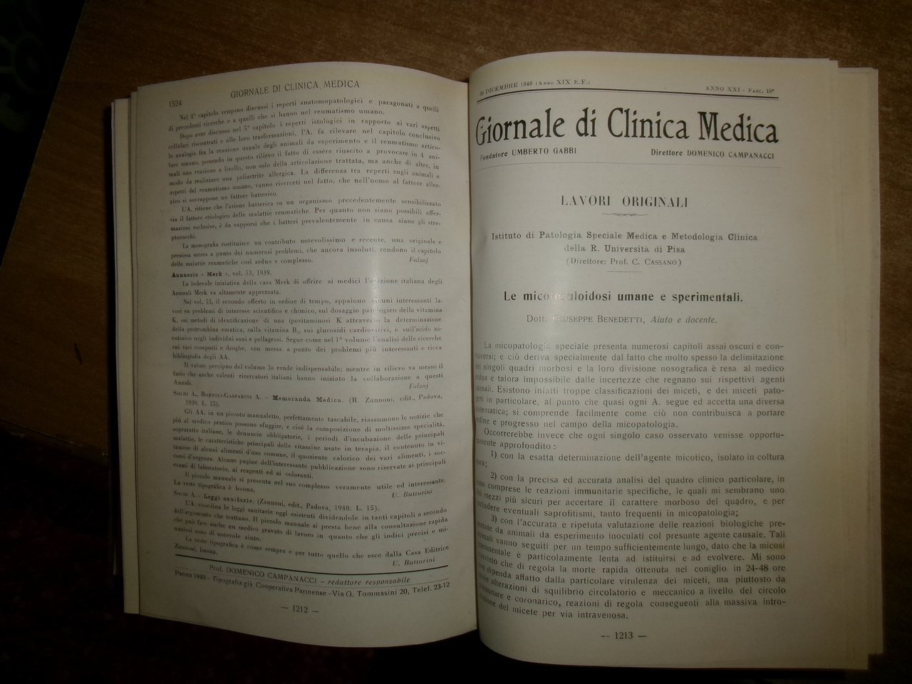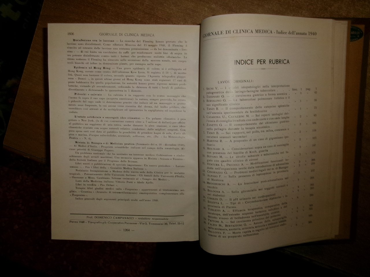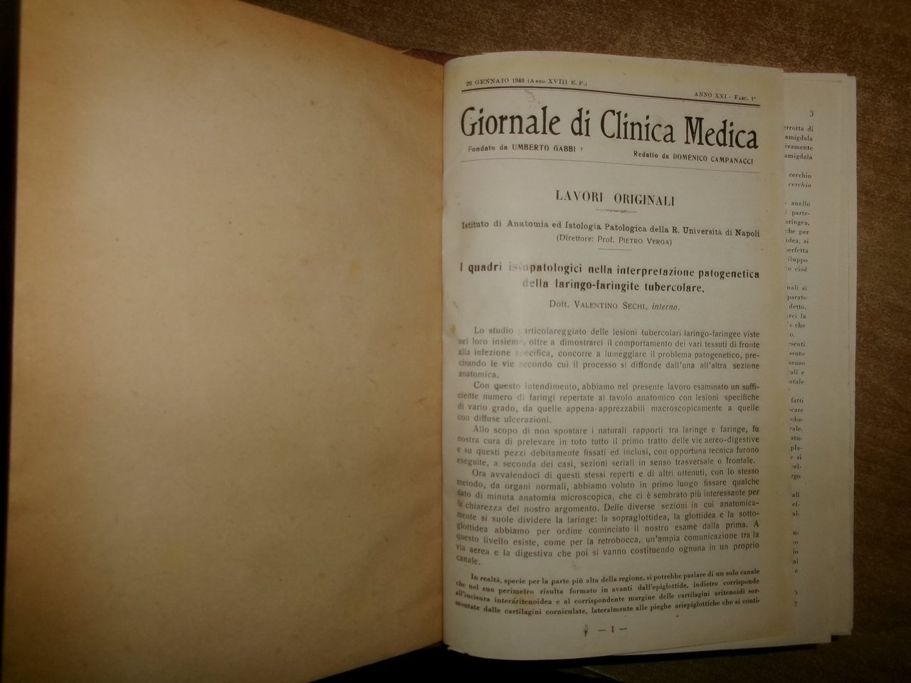 DOMENICO CAMPANACCI. Giornale di Clinica Medica 1940. 18 fascicoli in-8° legati assieme in m-tela. 1606, (25) pp. con figure in nero n.t. Normali segni del tempo ma ottimamente conservato. Uff. salon. sporta 4