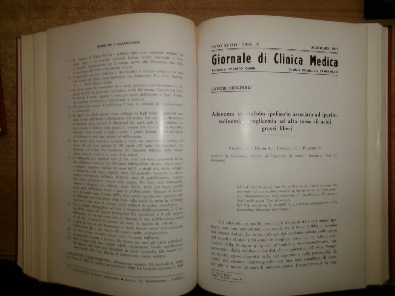 DOMENICO CAMPANACCI. Giornale di Clinica Medica 1967. 12 fascicoli rilegati in 2 volumi in-8°, m-tela con titoli in oro ai dorsi per complessive 1486 pp. con numerose figure in nero n.t. Ottimo stato. Uff. salon. sporta 3