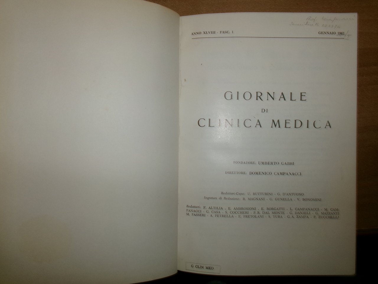 DOMENICO CAMPANACCI. Giornale di Clinica Medica 1967 12 fascicoli in 2 volumi