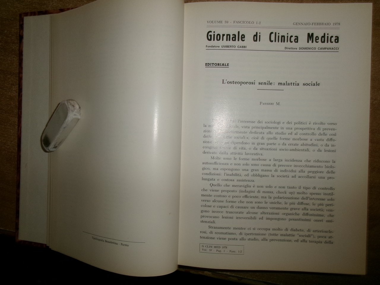 DOMENICO CAMPANACCI. Giornale di Clinica Medica 1978. 12 fascicoli legati assieme