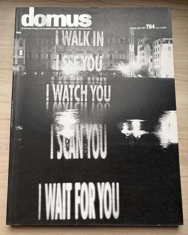 I ed. della rivista mensile: giugno 1997 numero 794 - Il concetto artistico dell'oggetto The artistic concept of objects (Via Achille Grandi 5/7, Rozzano - Milano). Testi in italiano/inglese. IV/(68)+XIV Illuminazione e sicurezza Lighting and security+152 anche ripiegate=234/brossura satiata (La copertina/ The Cover: Jenny Holzer, foto photo Gianfranco Gorgoni). Illustrazioni in nero, b/n e a colori. Art director: Giuseppe Basile. Con Rassegna Product Survey Lampade e accessori Lamps and accessories. Con Itinirerario Itinerary 135: Il Cubismo a Praga. Stato buono.
