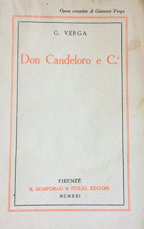 opere complete di Giovanni Verga. 853 � Ba In Ottavi (15-23cm ) Buono (Good) Buono