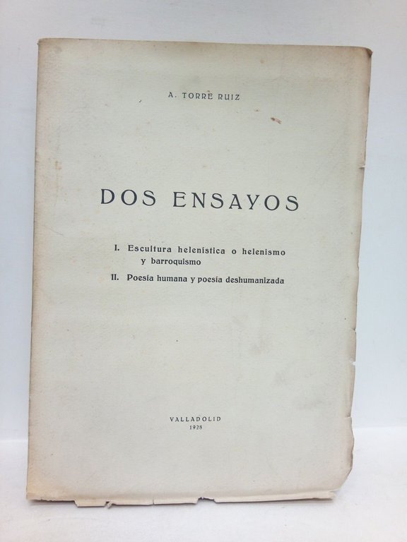 Dos Ensayos: 1. Escultura helenística o helenismo y barroquismo; 2. Poesía humana y poesía deshumanizada