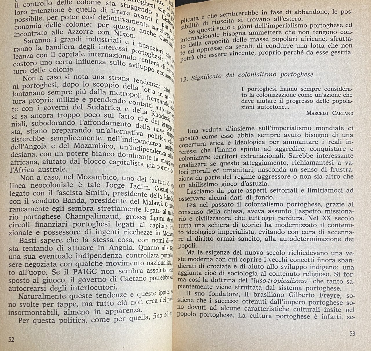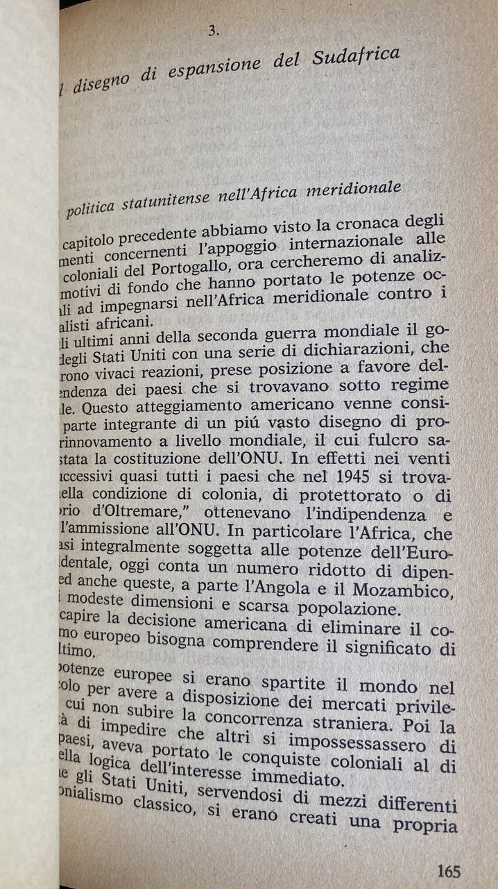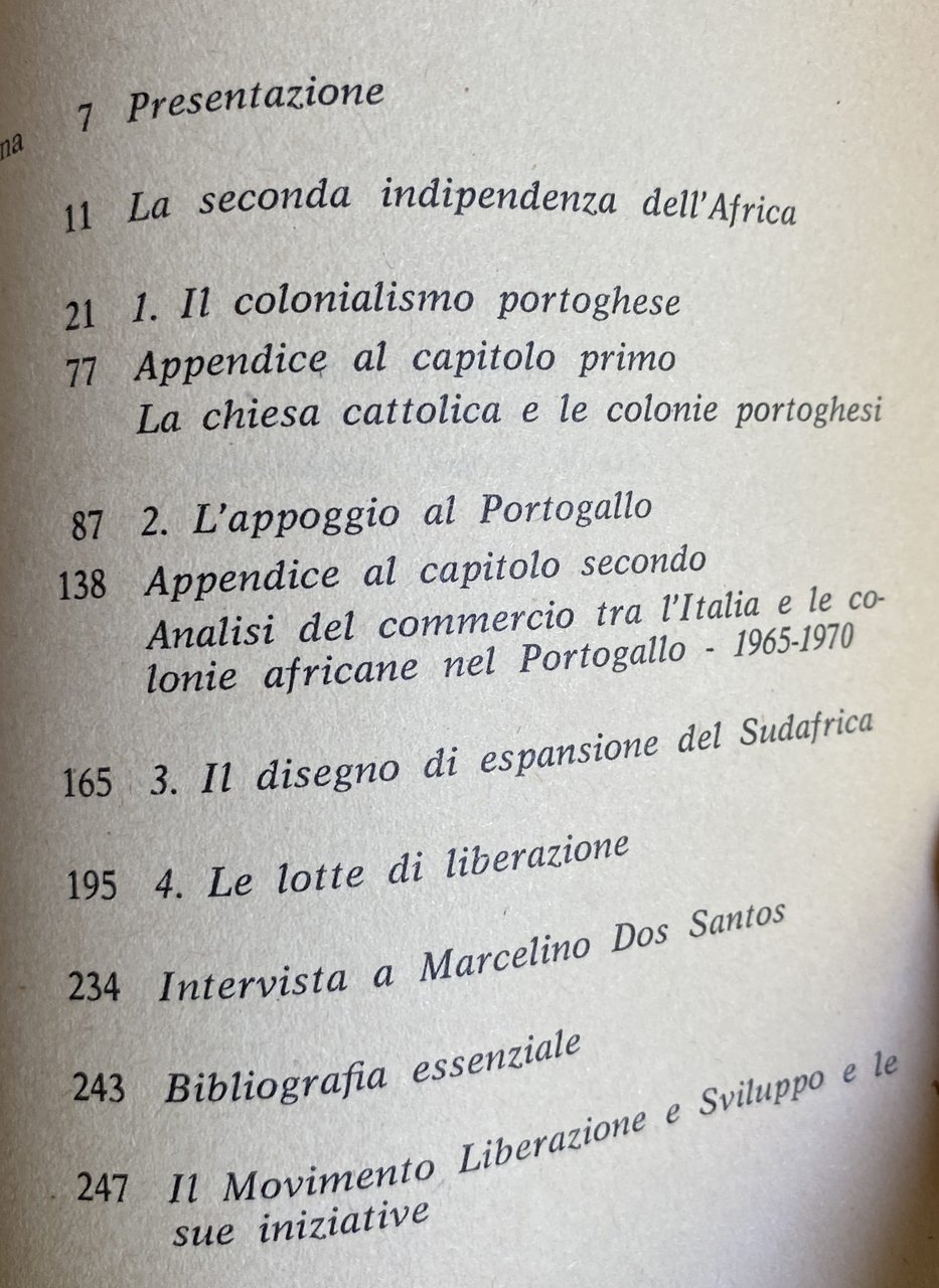Soggetti: Storia contemporanea Saggi storici Storiografia Libri rari Vintage fuori catalogo Studi Bibliografia Riferimento Collezionismo Portogallo Cultura portoghese Imperialismo Fascismo Colonialismo Occupazione Sfruttamento Seconda indipendenza Africa Chiesa cattolica Colonie portoghesi Appoggio Analisi Commercio Italia 1965-1970 Conquiste Territori Espansionismo Espansione Sudafrica Lotte Libertà Interviste Marcelino Dos Santos Movimento Liberazione Sviluppo Anni Sessanta Settanta Europa Potenze Occidente Schiavitù Lotta politica Militare Potere Masse Dominazione Saccheggio Ricchezze Monopoli Rapporti di forza Guerra Strategia Dipendenza Spartizione Monopolio Inghilterra Economia Impero britannico Concorrenza Fascisti USA RFT Angola Mozambico Francia Miniere Risorse energetiche Diamanti Giacimenti auriferi oro Cercatori d'oro Pionieri Partecipazione Concessioni Profitto Diritto Autodeterminazione Marxismo Socialismo Che Guevara Cuba Fidel Castro America Latina Nazioni Unite NATO Patto Atlantico Geopolitica Regimi autoritari Armamenti Armi Repressione Rivolte Malcontento Rivoluzione Addis Abeba Etiopia ONU Raccolte Documenti Materiali Decolonizzazione Amílcar Cabral FRELIMO Front de Libération du Mozambique MPLA Popular Libertação PAIGC Partido Africano Independência Guiné Cabo Relazioni internazionali Germania Stati Uniti Consenso Razzismo Discriminazioni razziali Oppressione Popolazione locale Capo Verde São Tomé Príncipe Dante Ballamio Terzo Mondo Garofani Antisalazarismo Resistenza Ben Barka Jacaranda Dittatura Estado Novo Luisa Passerini Internazionalismo Comunismo Eduardo de Sousa Ferreira Cadernos Livres Diritti umani de Andrade Mondlane Carlos Cardoso Inês Galvão José Neves Raúl Mendes Fernandes Rui Lopes Império Português Ribelli António de Oliveira Salazar Unione Sovietica Cina Apartheid Rhodesia Guerriglia Goa Arslan Humbaraci Nicole Muchnik Africani Agenti PIDE Agostinho Neto Alentejo Aljustrel Alpiarça Alvaro Cunhal Alves Arrestati Campo di concentramento Carcere Cattolici Caxias Censura Clandestinità Coimbra Compagni Tarrafal Condanna Condizioni Contadini Delgado Detenuti politici Elezioni Forte Peniche François Mauriac Governo gruppo Intellettuali Jean Martinet Legge Lisbona Manifestazioni Militari Sicurezza Montemor-o-Novo MUDJ Operai Opposizione Organizzazioni Persecuzionie Polizia Prigionieri Processo Proteste Sciopero della fame Solidarietà Studenti Tortura Tribunale speciale Gilberto Freyre Lusotropicalismo Maria Vargas Paul Sweezy Baran Esportazioni Marocco FIAT Diplomazia Ziegler Contemporary history Historical essays Historiography Rare books out of print Studies Bibliography Reference Collecting Portugal Portuguese culture Imperialism Fascism Colonialism Occupation Exploitation Second independence Catholic Church Colonies Support Analysis Trade Italy Conquests Territories Expansionism Expansion South Struggles Freedom Interviews Liberation Movement Development Sixties Seventies Europe Powers West Slavery Political struggle Masses Domination Plunder Wealth Monopolies War Strategy Dependence Partition Monopoly England Economy British Empire Competition Fascists France Mines Energy resources Diamonds Gold deposits Prospectors Pioneers Participation Concessions Profit Law Self-determination Marxism Socialism United Nations Atlantic Pact Geopolitics Authoritarian regimes Armaments Weapons Repression Riots Discontent Revolution Ethiopia Collections Documents Materials Decolonization International relations Germany States Consensus Racism Racial discrimination Oppression Local population Leader Green Third World Carnations Anti-Salazarism Resistance Dictatorship Internationalism Communism Human Rights Rebels Soviet Union China Guerrilla Africans Agents Arrested Concentration Camp Prison Catholics Censorship Clandestinity Comrades Conviction Conditions Peasants Prisoners Elections Government group Intellectuals Lisbon Demonstrations Military Security Workers Opposition Organizations Persecution Police Trial Protests Hunger strike Solidarity Students Torture Special Tribunal Lusotropicalism Exports Morocco Diplomacy