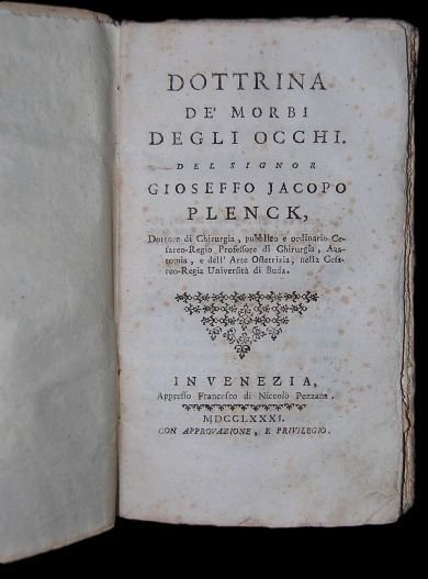Dottrina de Morbi degli occhi del Signor Gioseffo Jacopo Plenck, Dottore di Chirurgia, pubblico e ordinario Cesareo-Regio Professore di Chirurgia, Anatomia, e dellarte Ostetrizia, nella Cesareo-Regio Università di Buda.