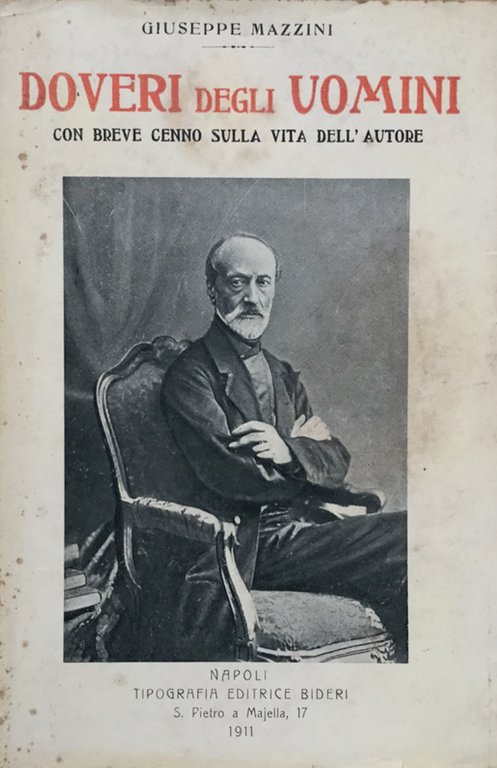 mediocri Spaccatura nel dorso, cop. un po' macchiata, alcune rade fioriture per il resto il vol. è in ordine. Cm. 19, br. edit. con cop. ill, pp. 119. Ritratto di Mazzini sulla cop. e all'interno. In Ottavi (15-23cm ) Mediocre (Poor) Accettabile