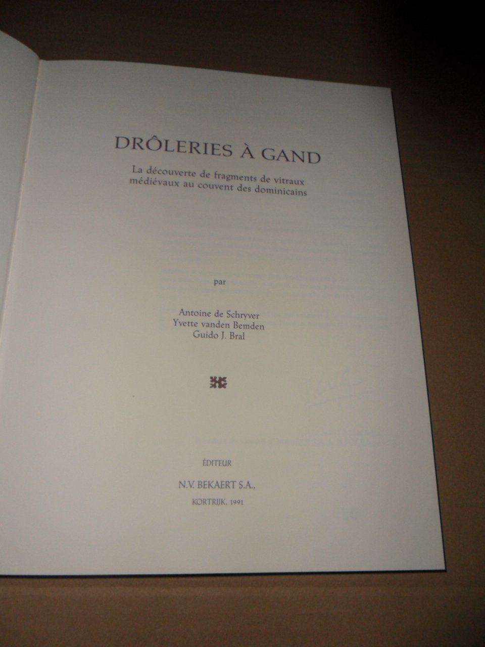Antoine De Schryver, Yvette Vanden Bemden, Guido Jan Bral (a cura di), drôleries à Gand. la découverte de fragments de vitraux médiévaux au couvent des dominicains - Bekaert, 1991 - copertina rigida, formato cm 24,5 x 31, pag. 141 - eccellente stato e pari a nuovo