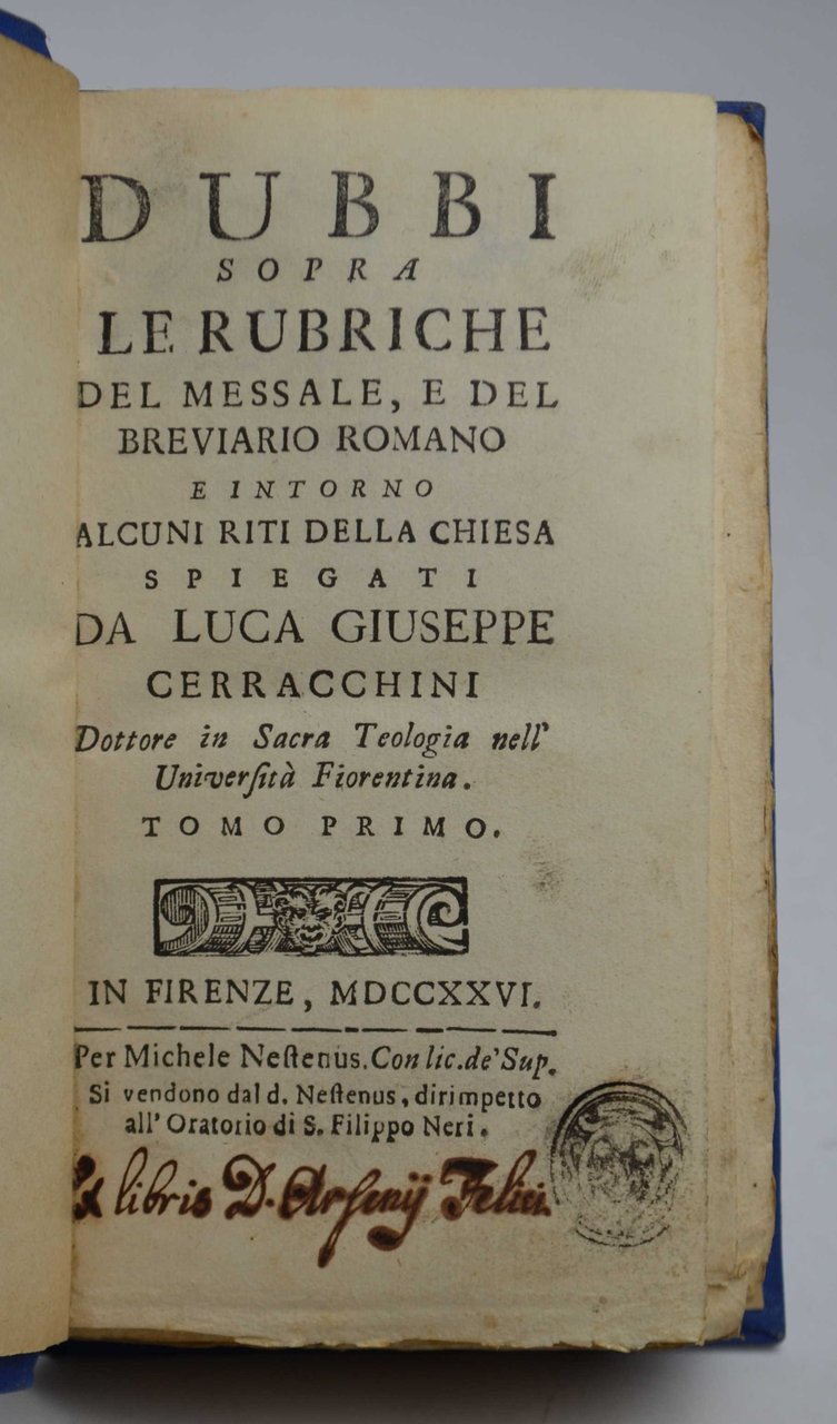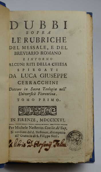 Dubbi sopra le rubriche del Messale, e del Breviario Romano e intorno alcuni riti della Chiesa…