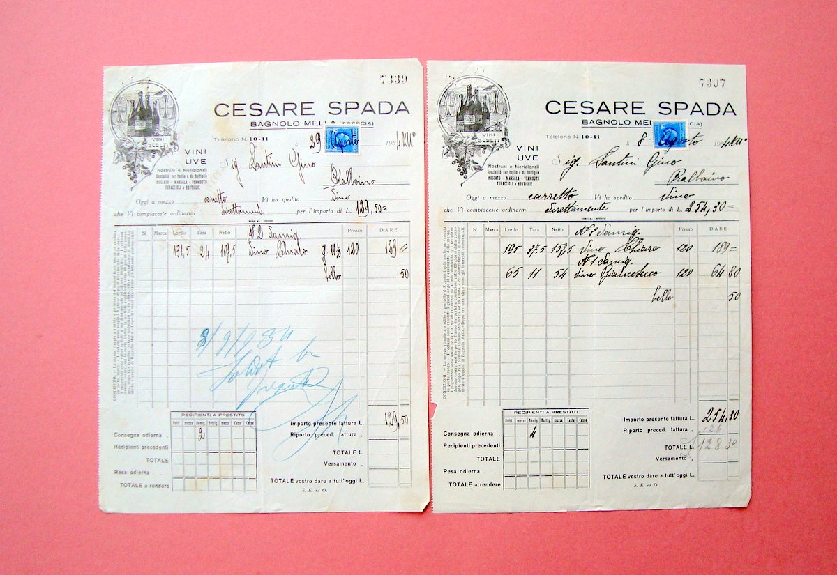 Due Fatture Cesare Spada Bagnolo Mella (Brescia) 1934 vini uve | Libri antichi e moderni |
